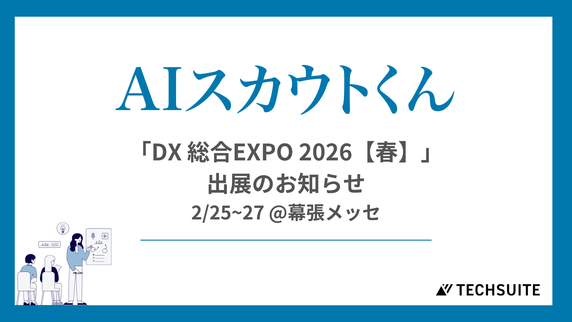 TechSuite株式会社は、2月25日から幕張メッセにて開催される「DX 総合EXPO 2026【春】」に出展し、スカウト代行サービス「AIスカウトくん」をご紹介します。
