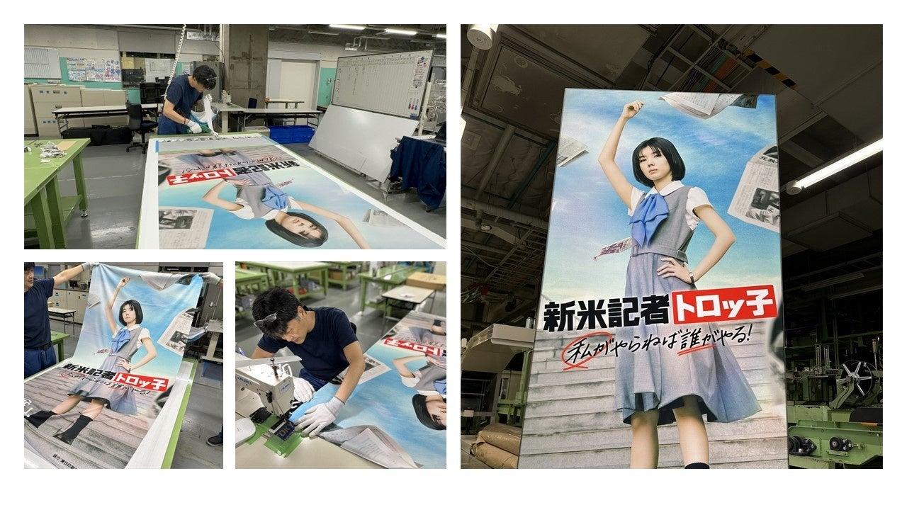 東日印刷株式会社(本社:東京都江東区、社長:西川光昭、以下 TONICHI、https://tonichi-printing.co.jp/)が製造・販売する100%ペットボトル再生布を使ったファブリック・サイネージ「LUFAS®(ルーファス)https://try-oa.com/services/lufas/」が、8月9日(金)公開の社会派青春エンターテインメント映画「新米記者トロッ子 私がやらねば誰がやる!」(配給:東映ビデオ、SPOTTED PRODUCTIONS、https://torokko-movie.jp/)で採用されました。7月11日(木)に、グランドシネマサンシャイン 池袋(豊島区東池袋)で行われた完成披露上映会のウェルカムボードとしてお披露目され、櫻坂46の藤吉夏鈴さん初主演映画に花を添えました。