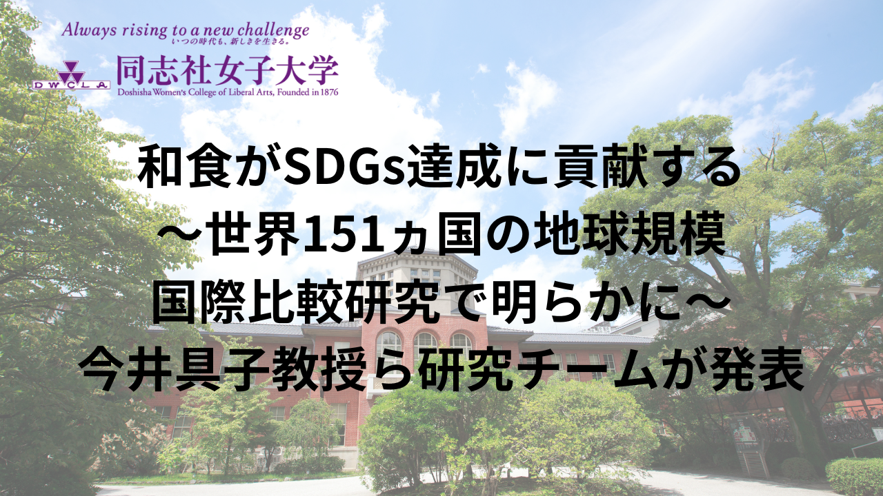和食がSDGs達成に貢献する~世界151ヵ国の地球規模国際比較研究で明らかに~今井具子教授ら研究チームが発表