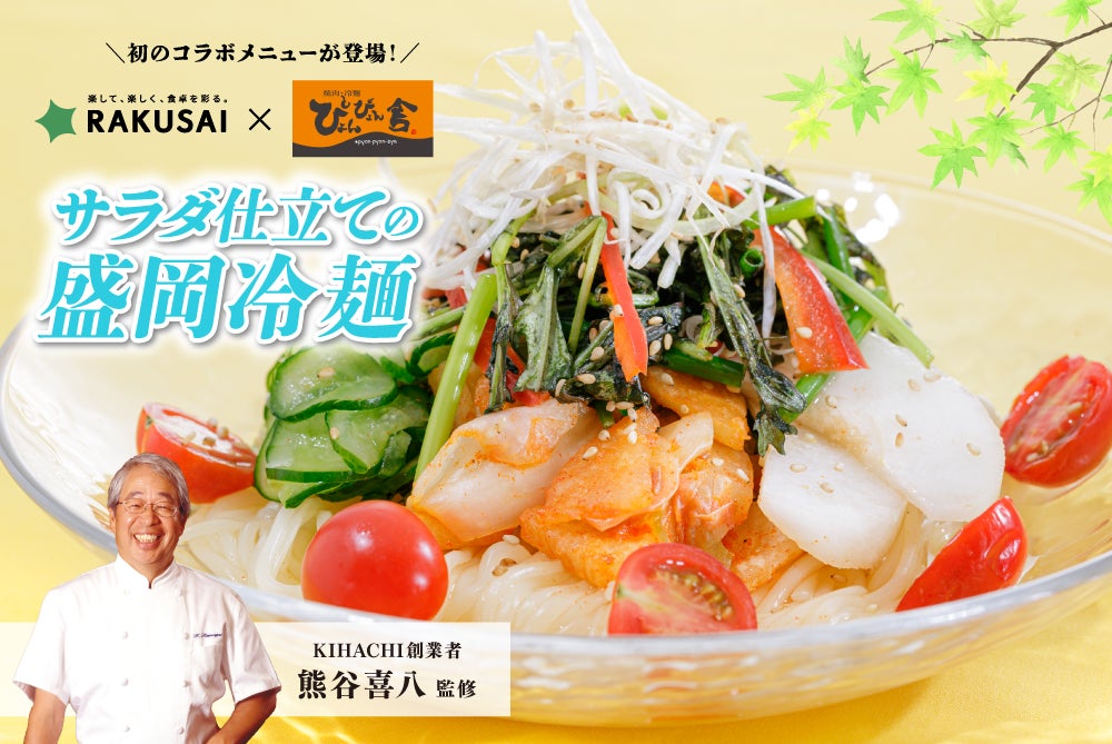 楽彩株式会社(本社:東京都足立区/代表取締役社長:大﨑善保)は、盛岡冷麺の老舗「ぴょんぴょん舎」とコラボレーションし、熊谷喜八シェフ監修のもと開発した『サラダ仕立ての盛岡冷麺セット』を、2025年8月11日(月)10:00より公式オンラインショップにて、期間限定で販売開始いたしました。