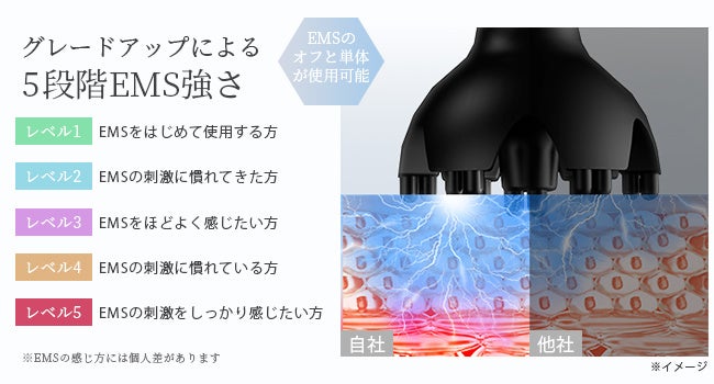 5段階EMS調節で、頭皮の硬さをケア