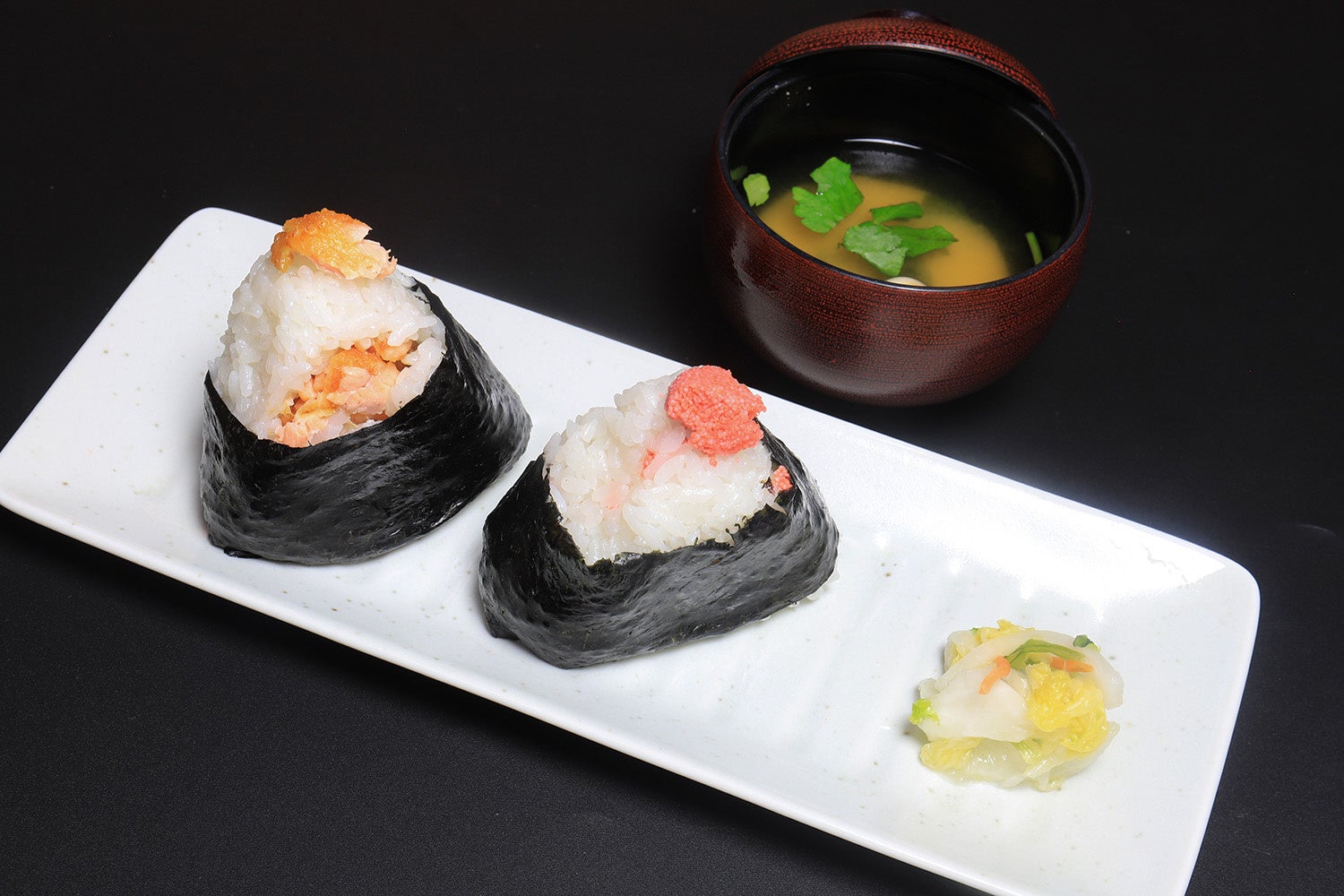 おにぎり2種(味噌汁・漬物付)