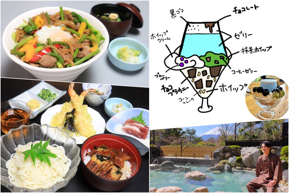 富士眺望の湯ゆらり内「お食事処ふじざくら」で、夏限定メニューが7月3日より登場!牛肉スタミナ丼や冷麺などに加え、タレントりゅうとさんとのコラボパフェも販売!