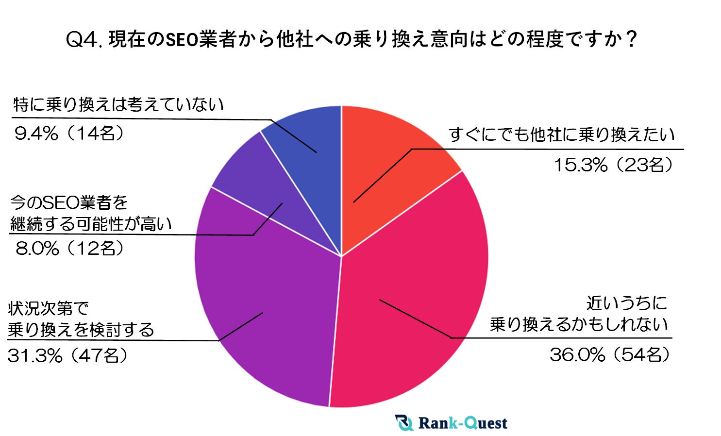 調査結果④:現在のSEO業者から他社への乗り換え意向はどの程度ですか?