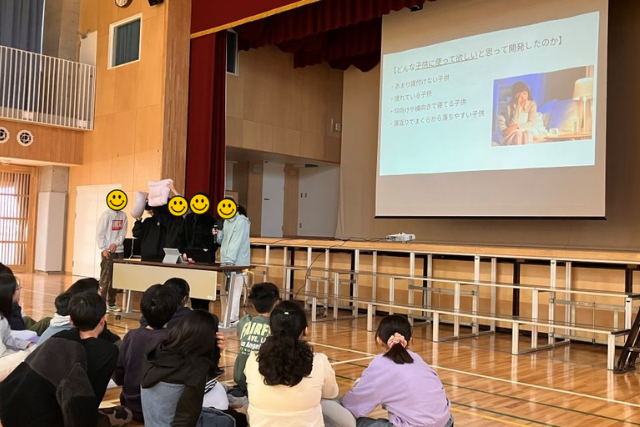 12月初旬からスタートした授業では約3カ月掛けて、健康増進のための良質な睡眠の重要性や商品を企画・開発するためのコンセプトや方法をレクチャーし、最終的に子供たちが考えた商品を作り上げ、実際に使用した結果を皆でブラッシュアップするなど、実践そのものに迫る展開で授業が進行されました。