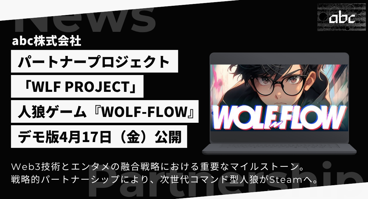 abc株式会社(本社:東京都港区、代表取締役:松田 元、証券コード:8783、以下「当社」)は、当社の戦略的パートナープロジェクトである「WLF PROJECT」が開発を進めるPC向けオンライン対戦ゲーム『WOLF-FLOW』のデモ版が、2026年4月17日(金)よりSteamにて公開されることをお知らせいたします。