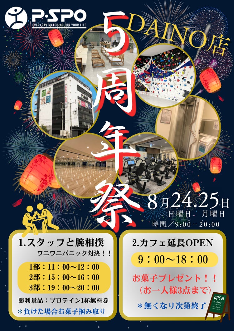 ダイノ P・SPO (ピースポ)土居田店、オープン5周年記念イベント開催!腕相撲・ゲーム対決・特別カフェも登場!