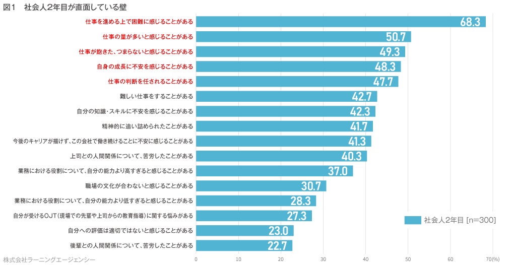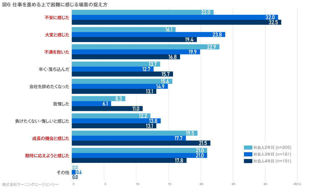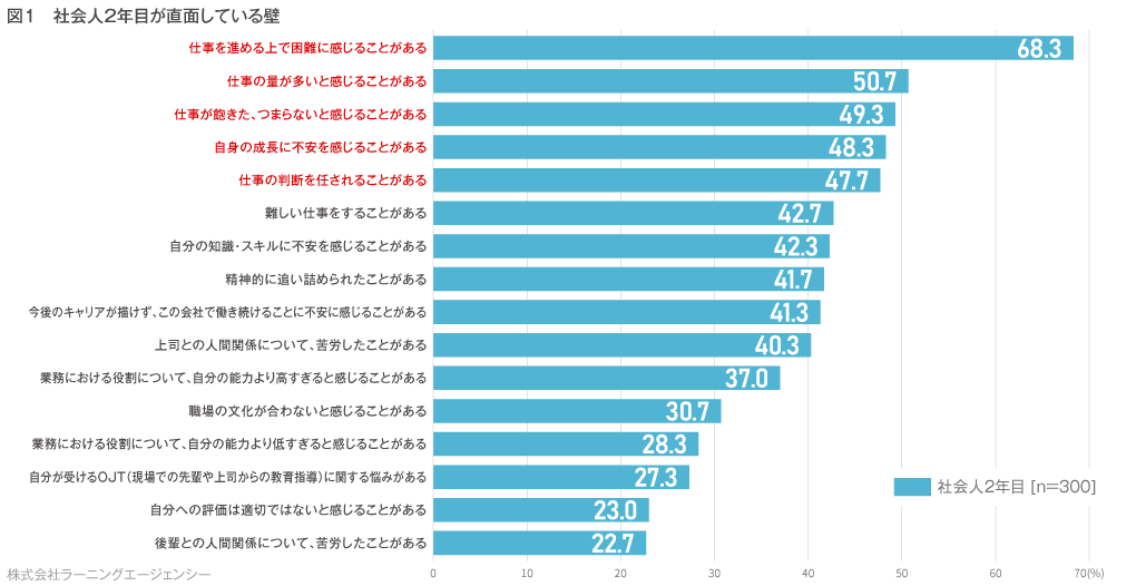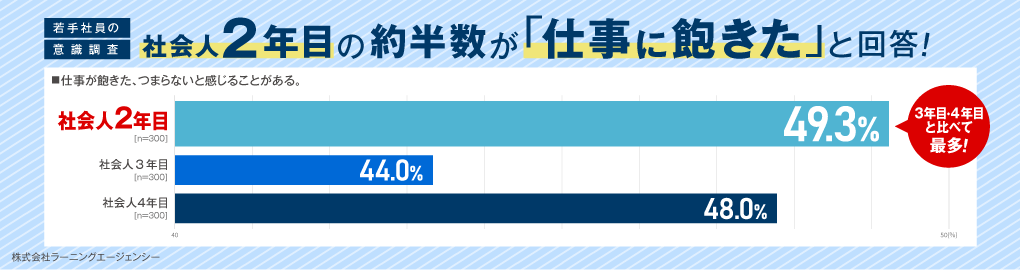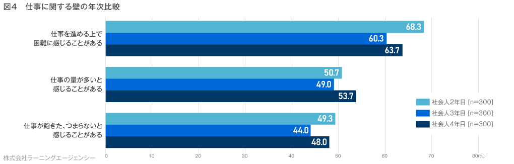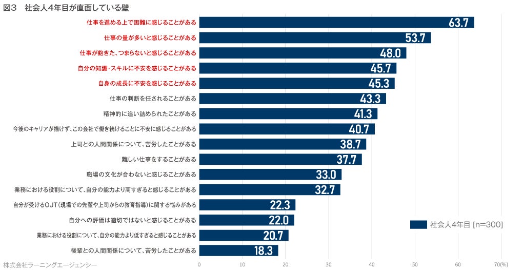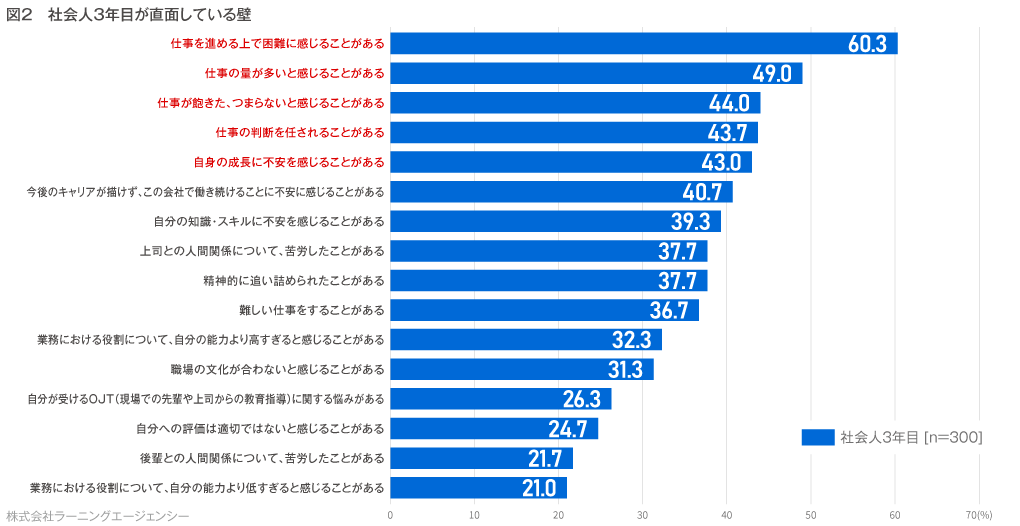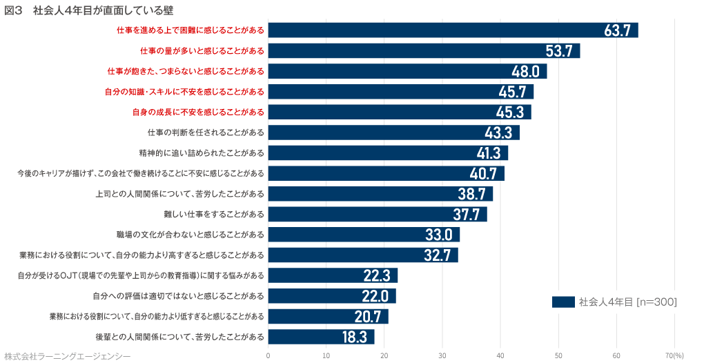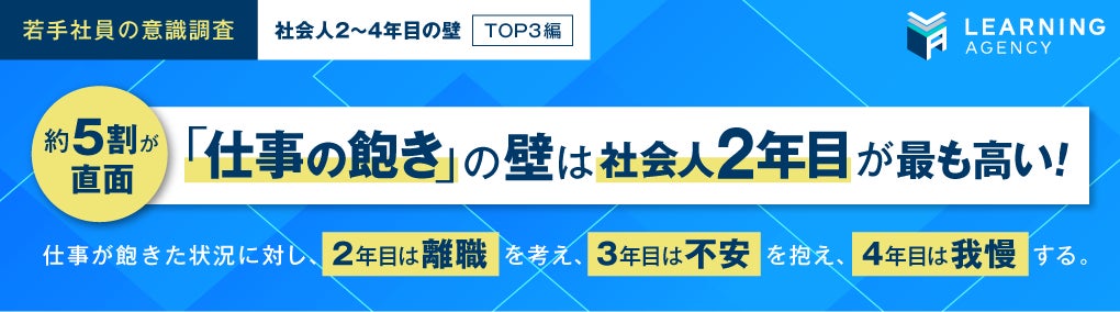 *本調査を引用される際は【ラーニングエージェンシー「若手社員の意識調査(社会人2年目~4年目の直面する壁TOP3編)】と明記ください
