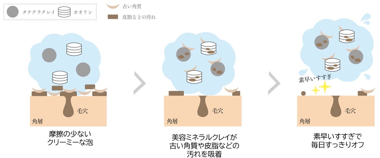 古い角質を柔らかくほぐし、汚れを吸着する洗顔料