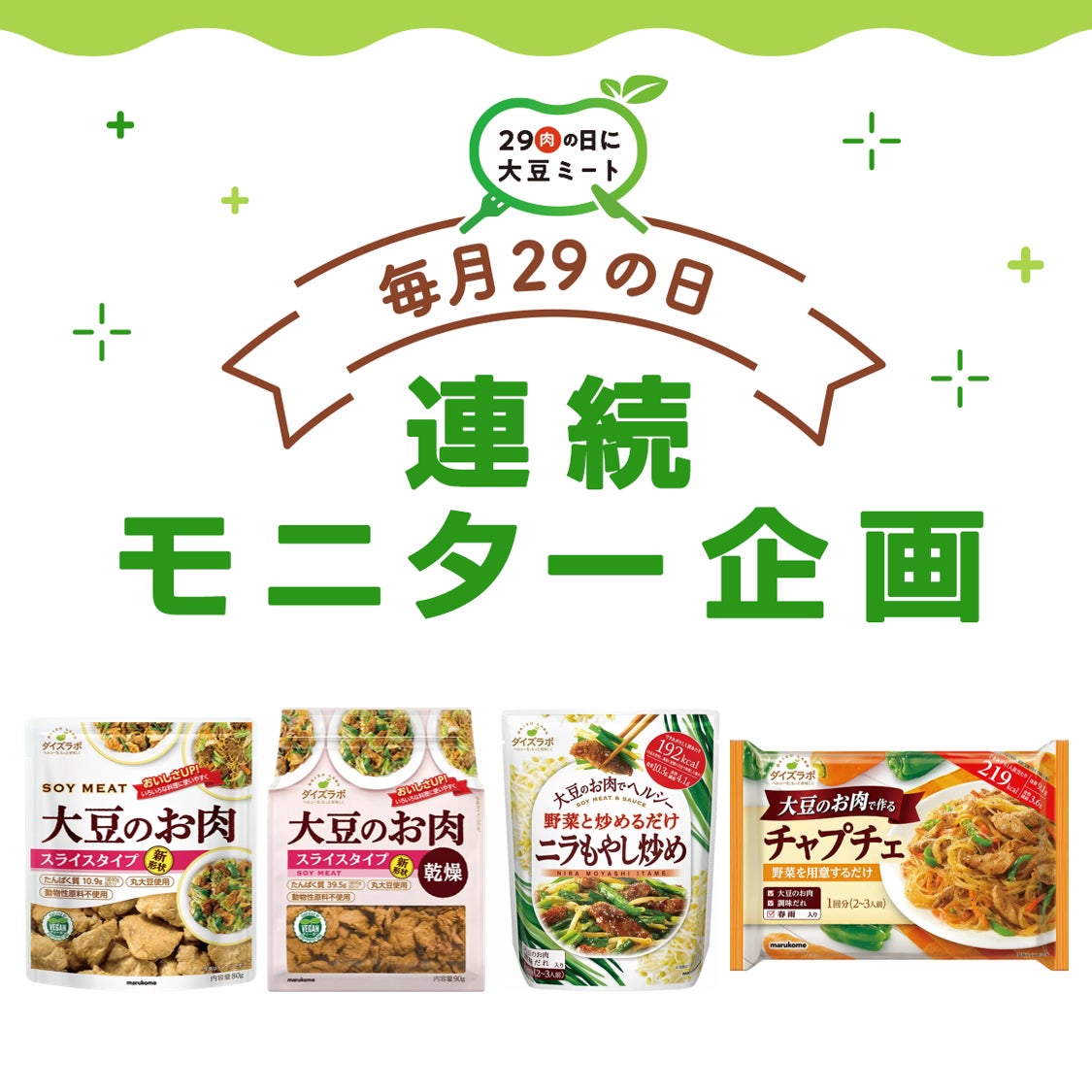 - 毎月29の日モニター企画&投稿キャンペーン「集まれ!大豆ミート料理」