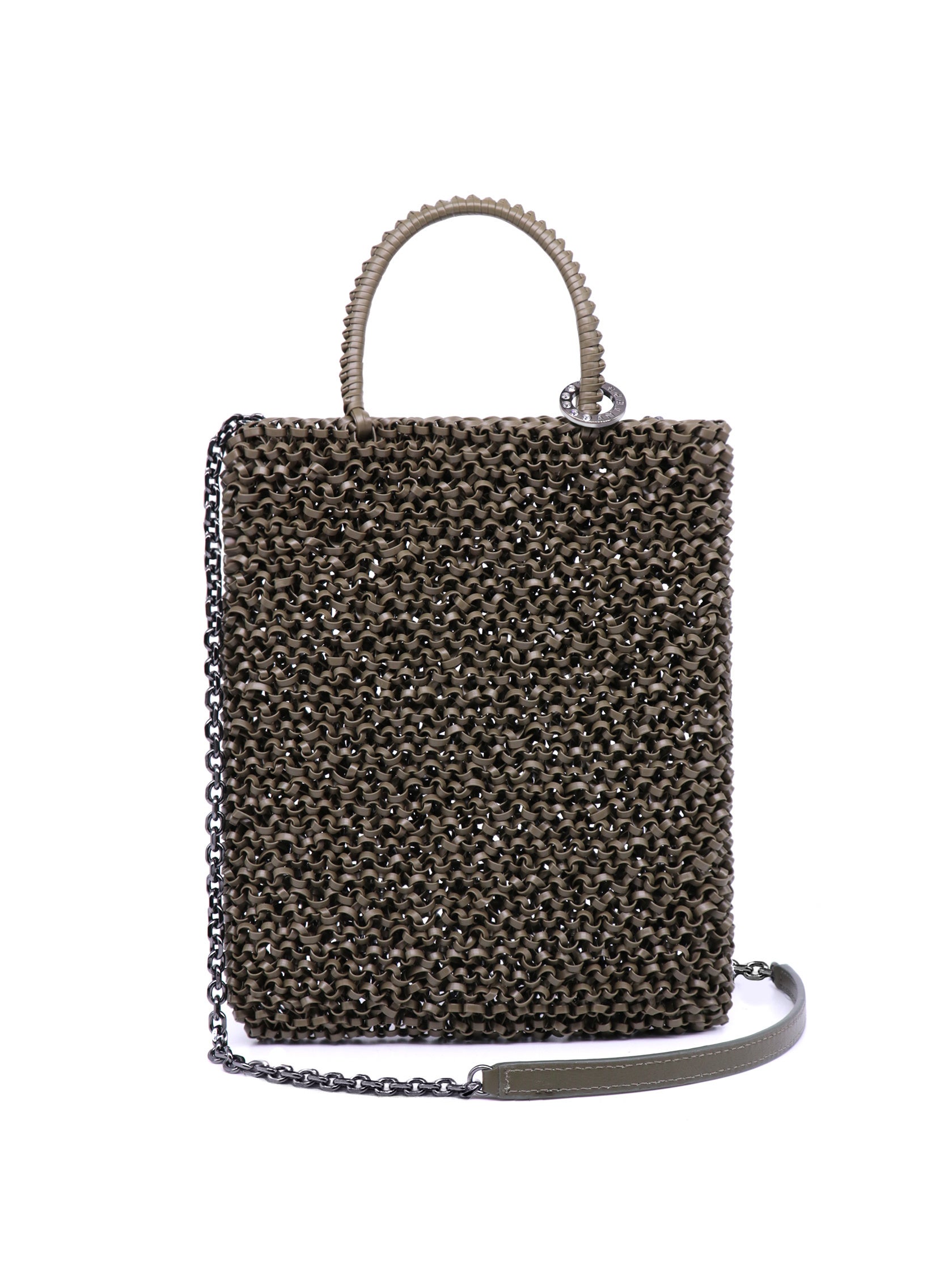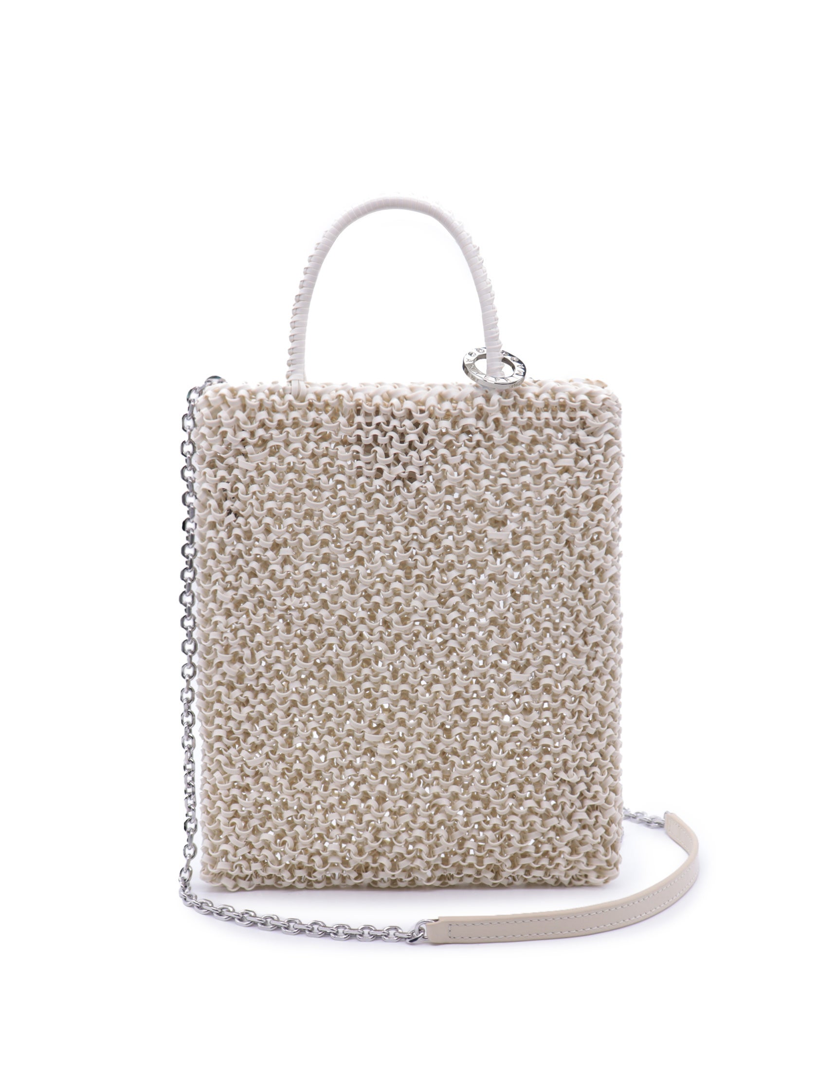 エクスクルーシヴな素材を使い、ひとつひとつを手編みで仕立てたワイヤーバッグ。アンテプリマのアイコンとも言うべきこのスタンダードシリーズに加わった、すっきりとした縦長シェイプのショルダーバッグ。