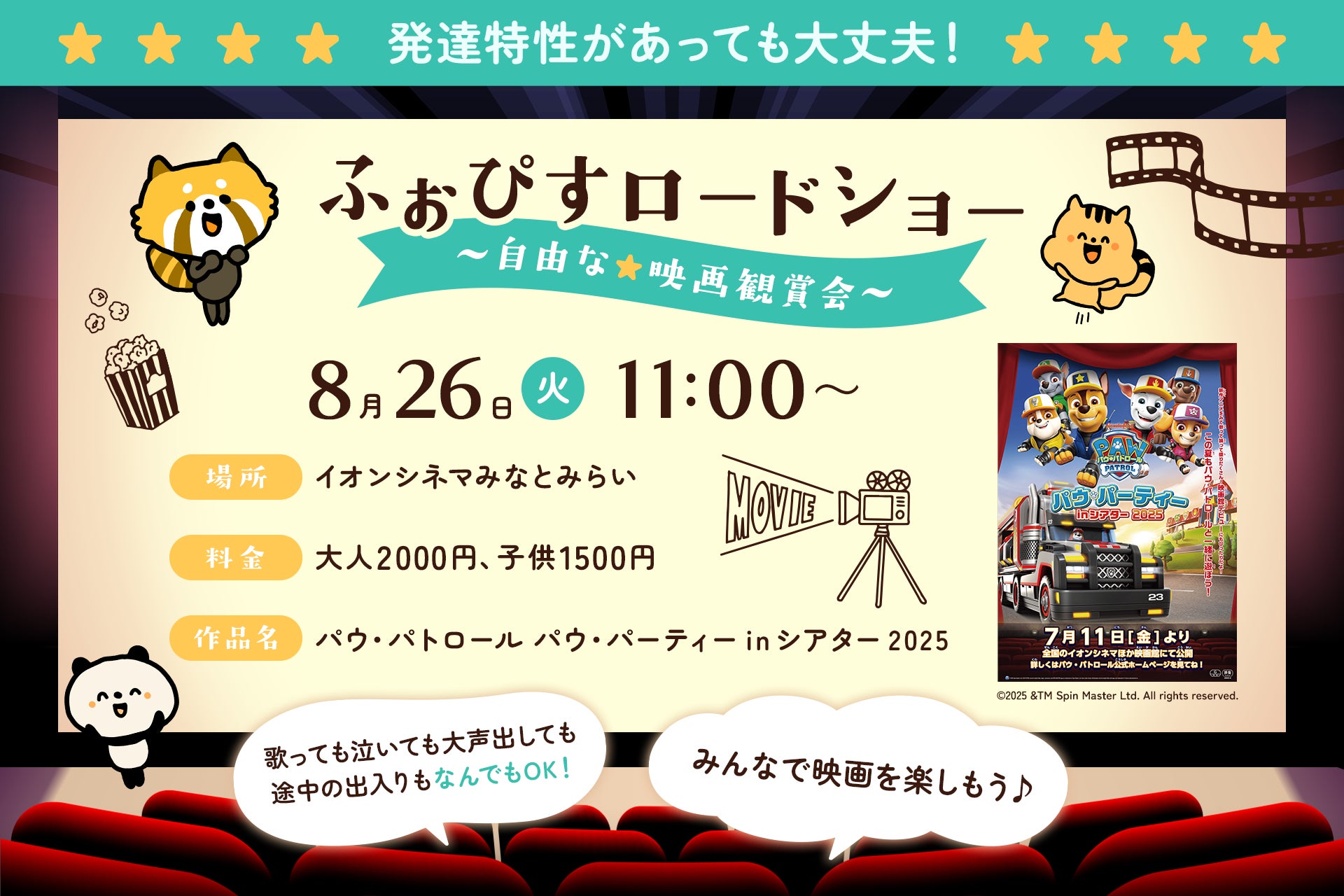 発達特性があっても大丈夫!家族みんなが安心して楽しめる「ふぉぴすロードショー」を初開催-大人気のパウ・パトロールを貸切映画館で楽しめます!