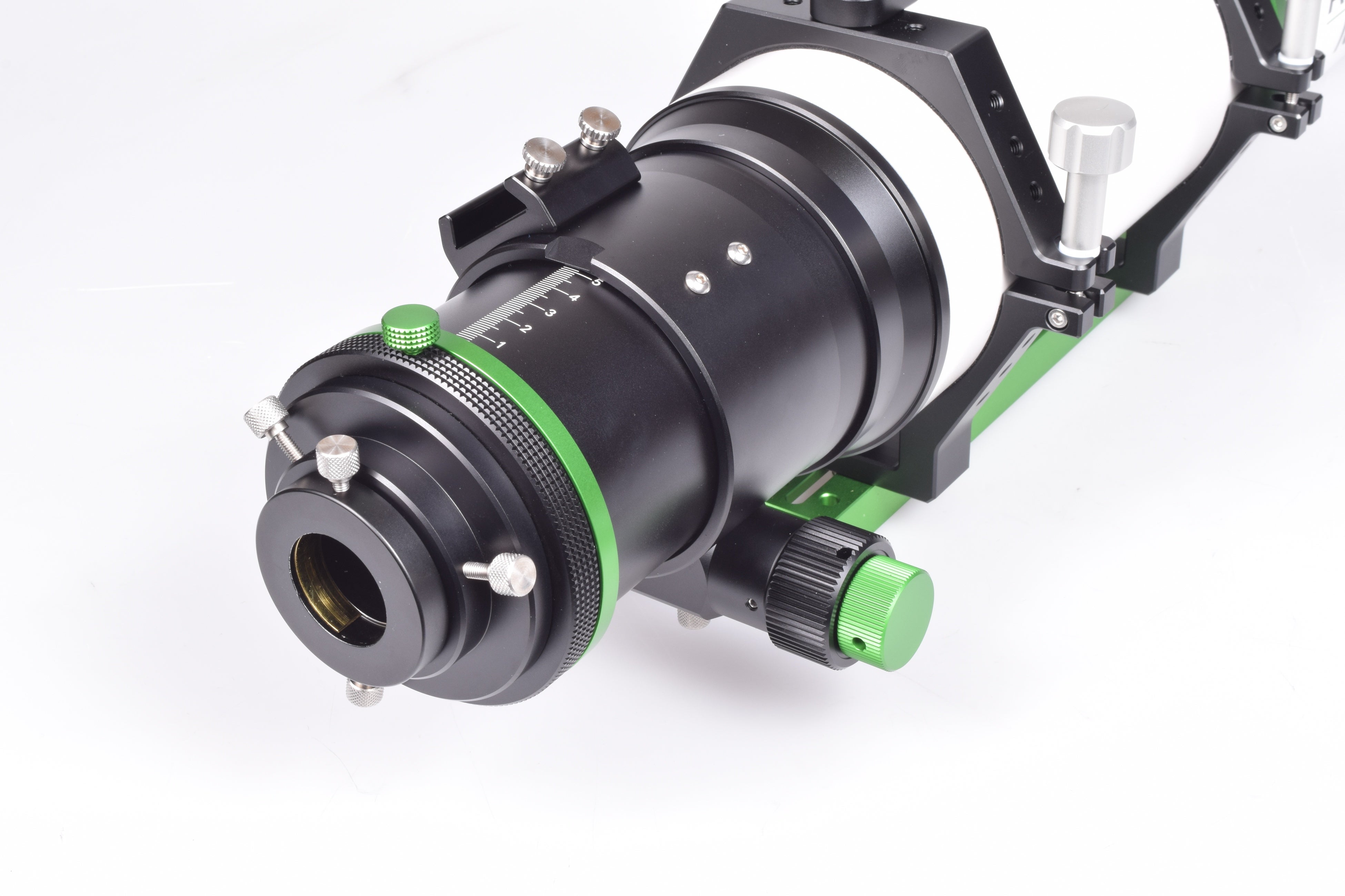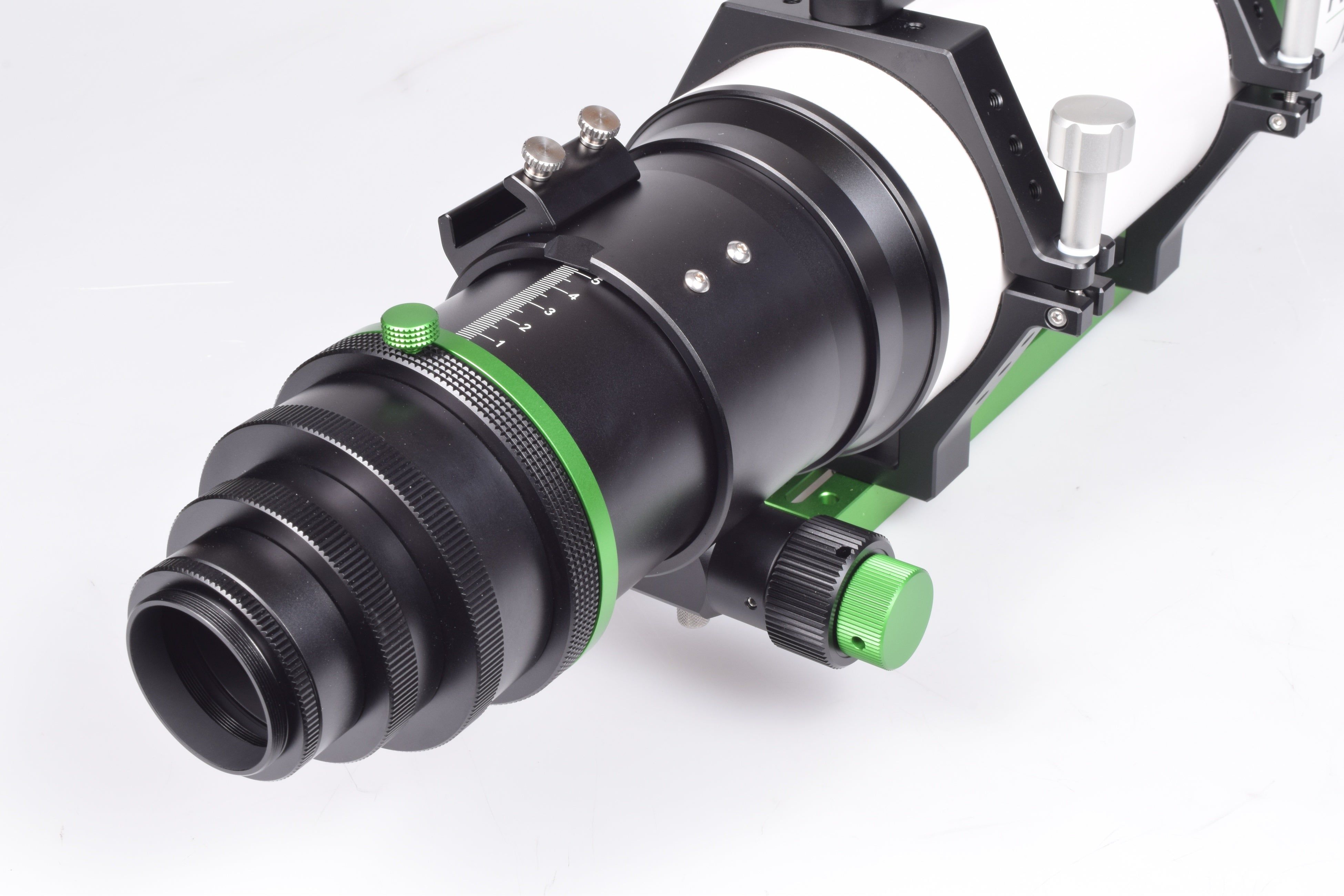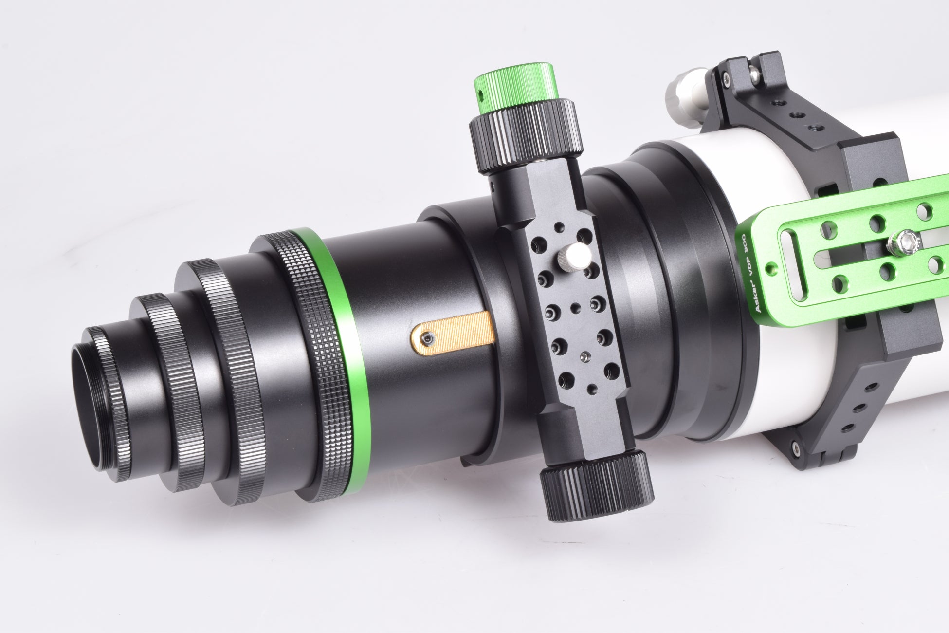 ・眼視観測用に2″と1.25″の差し込みが可能なアダプターが付属しています。2″アダプターから焦点まで約120mmのバックフォーカスがあり、天頂ミラーやバローレンズなどのアクセサリーの取り付けにも対応しています。