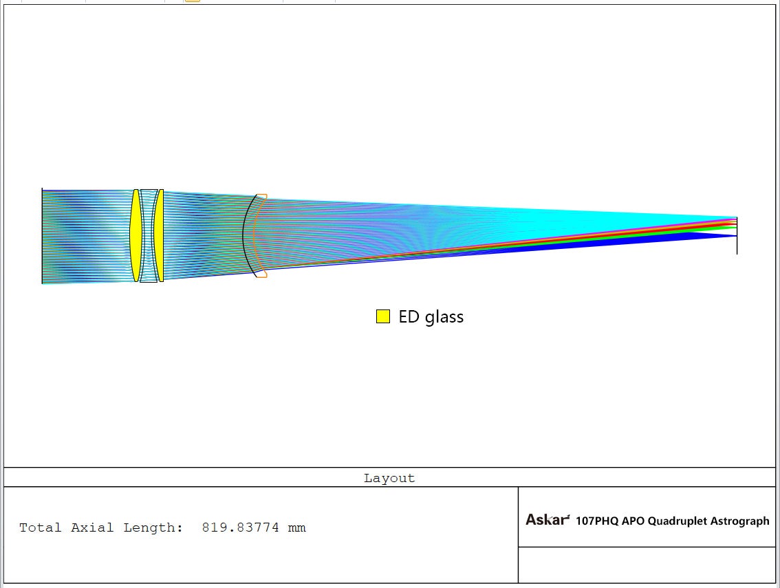 ・焦点距離は749mm、口径比はF7とAskarブランドの鏡筒の中では比較的長めの焦点距離に設計されているフォトビジュアル鏡筒で、アイピースによる眼視観測、カメラによる天体撮影ともに優れた性能を発揮するオールラウンダーです。