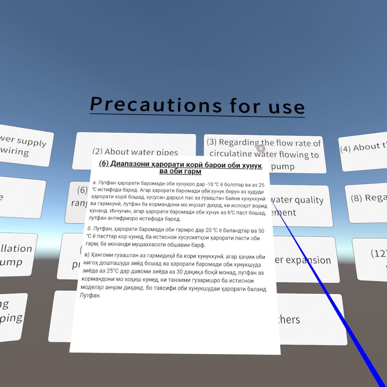 上記プロジェクトの中で地中熱源ヒートポンプ (GSHP) の現地導入教育に、Unityによって構築されたバーチャル環境と Goocus VR を組み合わせた学習システムをご利用いただきます。