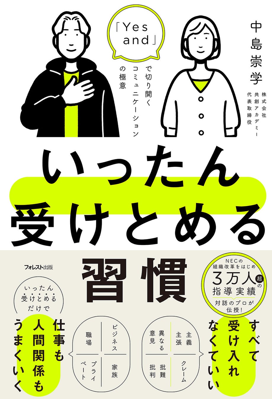 フォレスト出版株式会社(所在地:東京都新宿区、代表取締役:太田 宏)は、『いったん受けとめる習慣』(中島 崇学・著)を2025年2月10日(月)より順次発売します。本書は多様性の時代にこそ必要な、「Yes and」を使った会話の進め方、相手の気持ちを受けとめるための心構え、そして習慣化するための実践的なエクササイズまで網羅した一冊です。