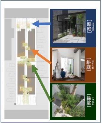 ・「斜庭」-隣棟の壁までの距離を自分の家のよう