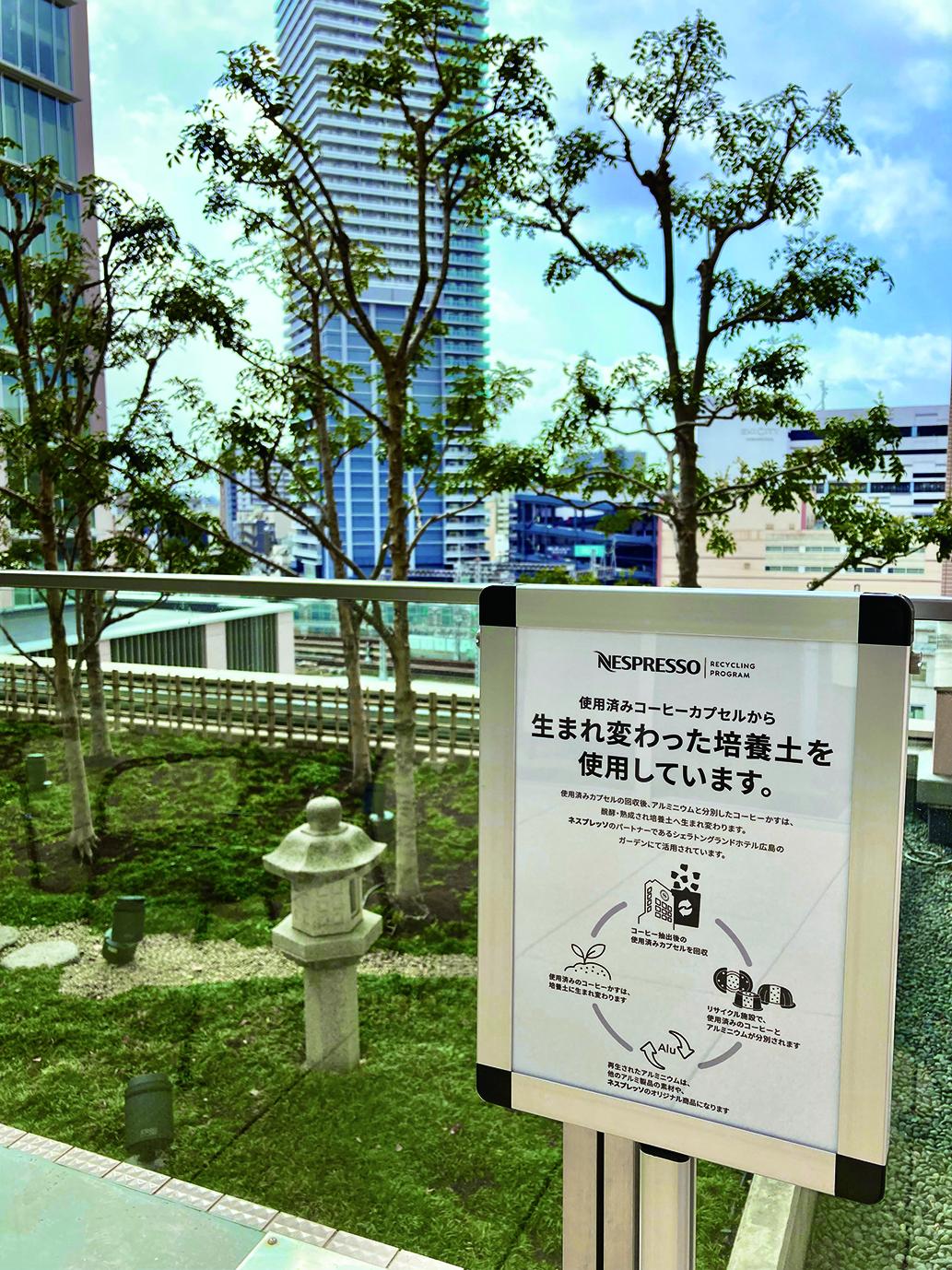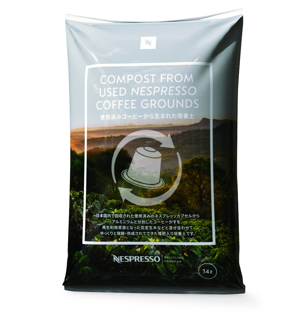 ネスプレッソはコーヒーが育つその地球に敬意を払い、持続可能なコーヒーの提供に向けた取り組みのうちの一つとして、2020年8月より日本にて独自のリサイクルプログラム「ネスプレッソ リサイクルプログラム」を開始しました。カプセル回収ボックス設置店舗やパートナー企業等にて回収した使用済みカプセルを分別し、カプセルのアルミニウムは再生アルミニウム素材に、またコーヒーかすは培養土へと生まれ変わっています。