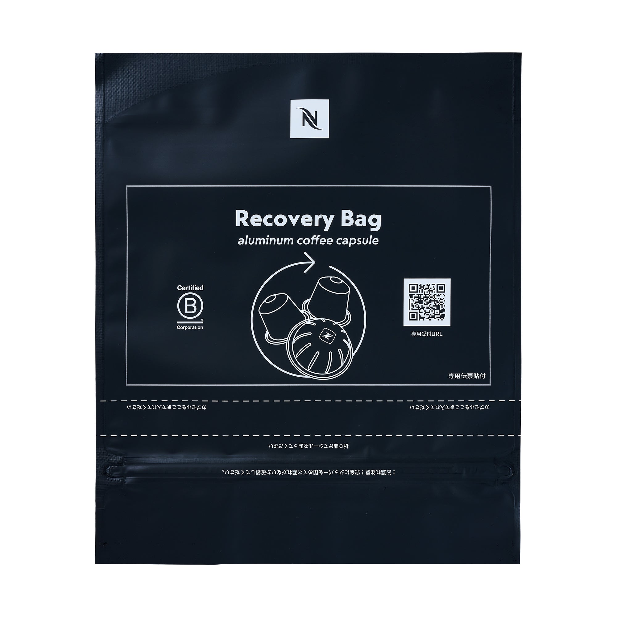 「ご自宅回収用リカバリーバッグ」は、「オリジナル」向けコーヒーカプセル約100個、「ヴァーチュオ」向けコーヒーカプセル約40個(マグサイズの場合)が入る、ご自宅回収サービス専用のバッグです。「ご自宅回収用リカバリーバッグ」に印刷されたQRコードから専用受付サイトにアクセスすることで、スムーズに回収依頼が可能です。