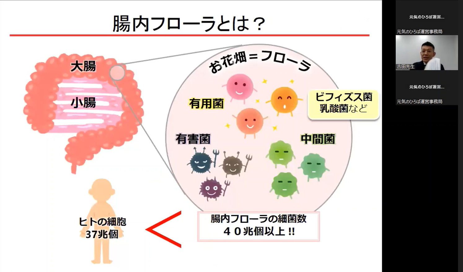 腸活とは何か?に始まり、昨今注目が集まっている理由、腸内フローラの最新情報、明日から実践できる腸活など様々な腸活情報を1時間にまとめてご紹介しました。