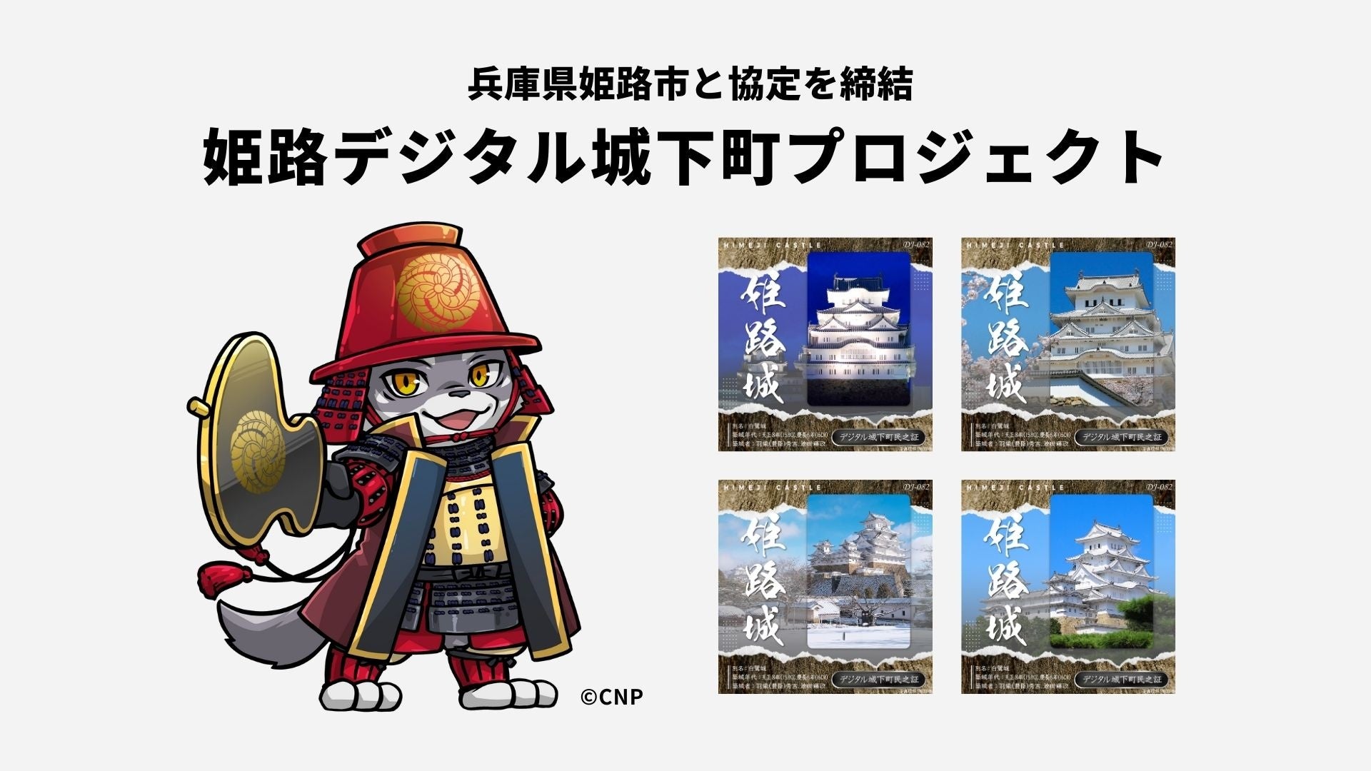 国内最大級のNFTプロジェクト「CNP」と連携し、姫路城の「デジタル城下町民」を1万人限定で募集。城郭を中心としたWeb3時代の地域創生コミュニティを形成します。