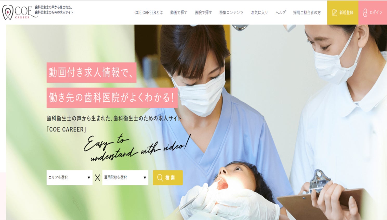 このプラットフォームは、縦型ショート動画を活用した「働くが分かる」新しい形の求人メディアです。求職者である歯科衛生士は、自分にマッチする職場をより簡単に見つけることができ、求人掲載医院は、自院にマッチする求職者により効果的にアプローチすることができます。「COE CAREER」は、縦型ショート動画を活用し、歯科衛生士の求人市場に新風を吹き込みます。