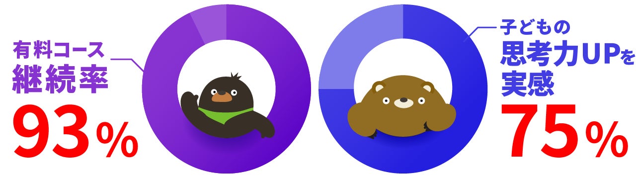 特に有料コースをご利用いただいているユーザーに関しては、約75%がシンクシンクの利用によってお子さまの思考力向上を実感していることが分かりました。(*3) その結果、有料コースの翌月継続率は約93%以上と高水準で推移しています。(*4)