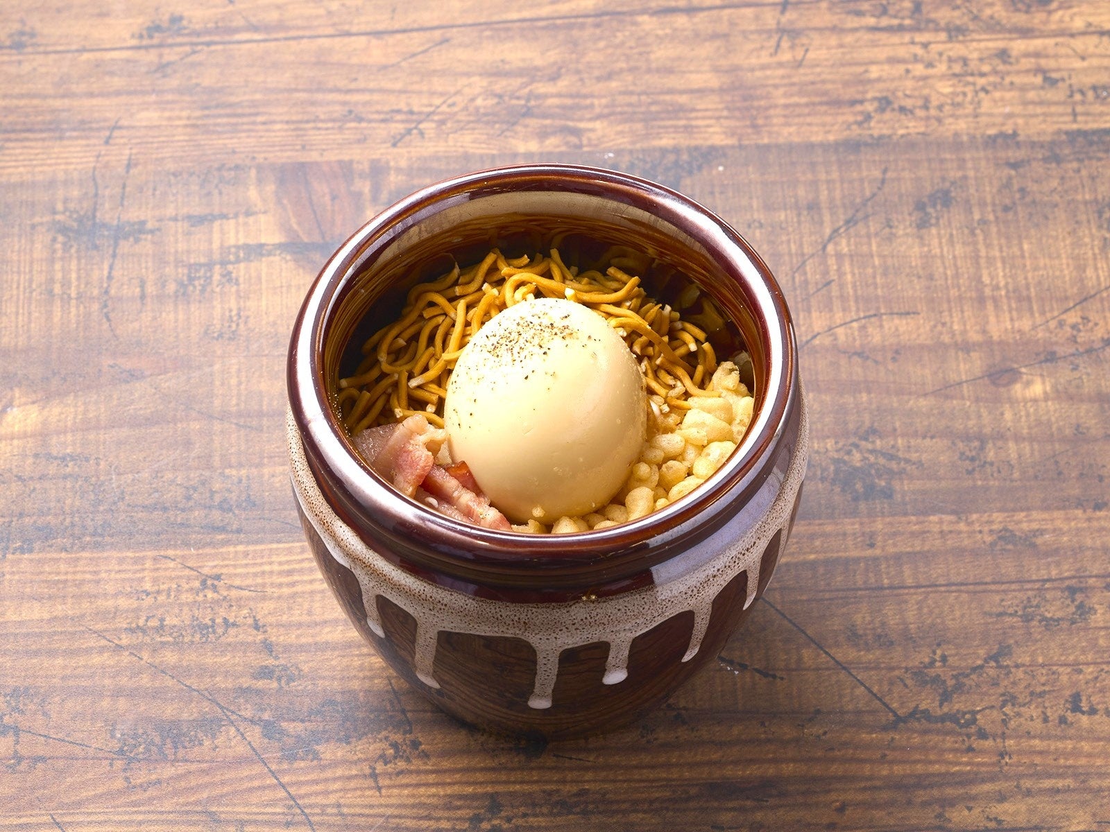 卵を潰しながらジャガイモ、ベーコン、天かす、ベビースターをよーく混ぜてお召し上がりください。ベビースターの香ばしさがアクセントとなり、おつまみにもピッタリです。