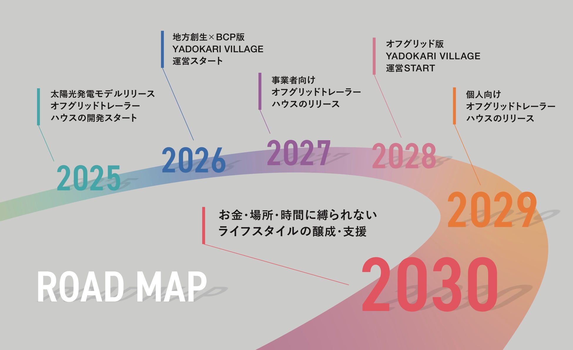 また、YADOKARI VILLAGEの拠点数拡大を通じて、災害時には被災者へ迅速に住まい提供を行う手段としてのトレーラーハウス導入を全国の企業・自治体と連携しBCP構築の拡大支援を行ってまいります。