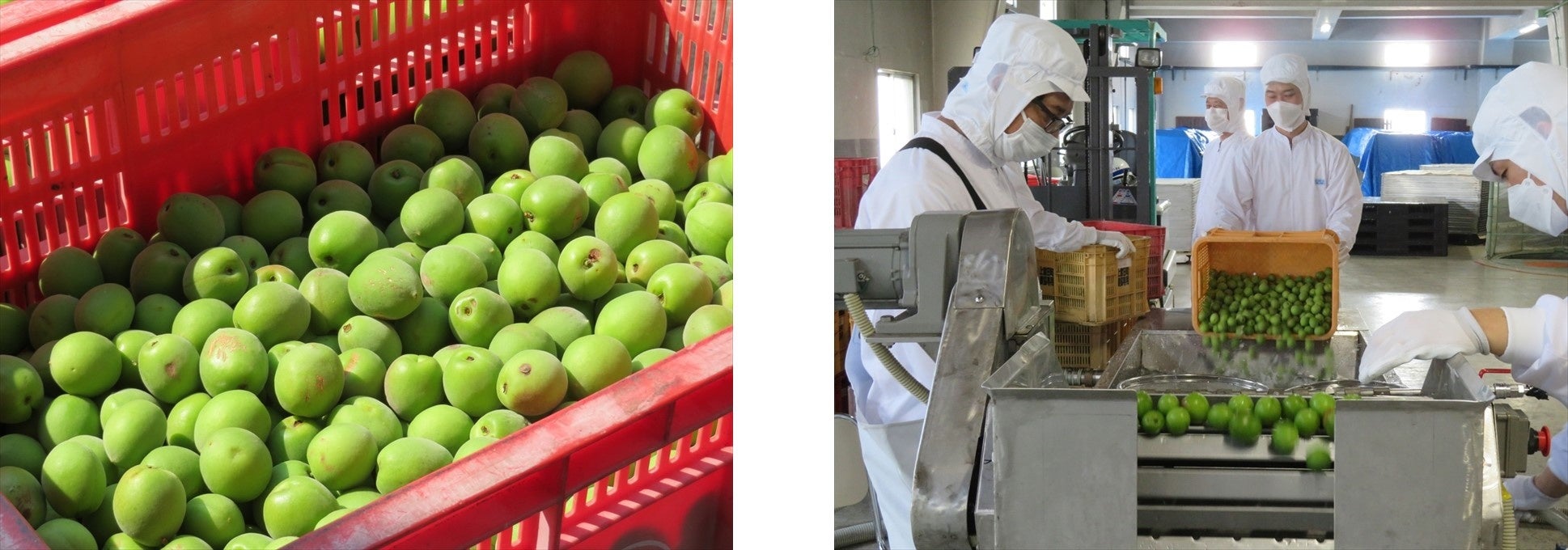 今年は、5月25日に「青いダイヤ」とも呼ばれる希少品種の【古城梅(ごじろうめ)】を、6月から約10日間かけて香り高い完熟の【南高梅】を仕込みます。夏ごろに梅実を引き上げ、熟成させた梅酒は、来年春以降、順次商品として出荷されます。当社の本格梅酒5アイテムは全て紀州産の梅実を使用しています。