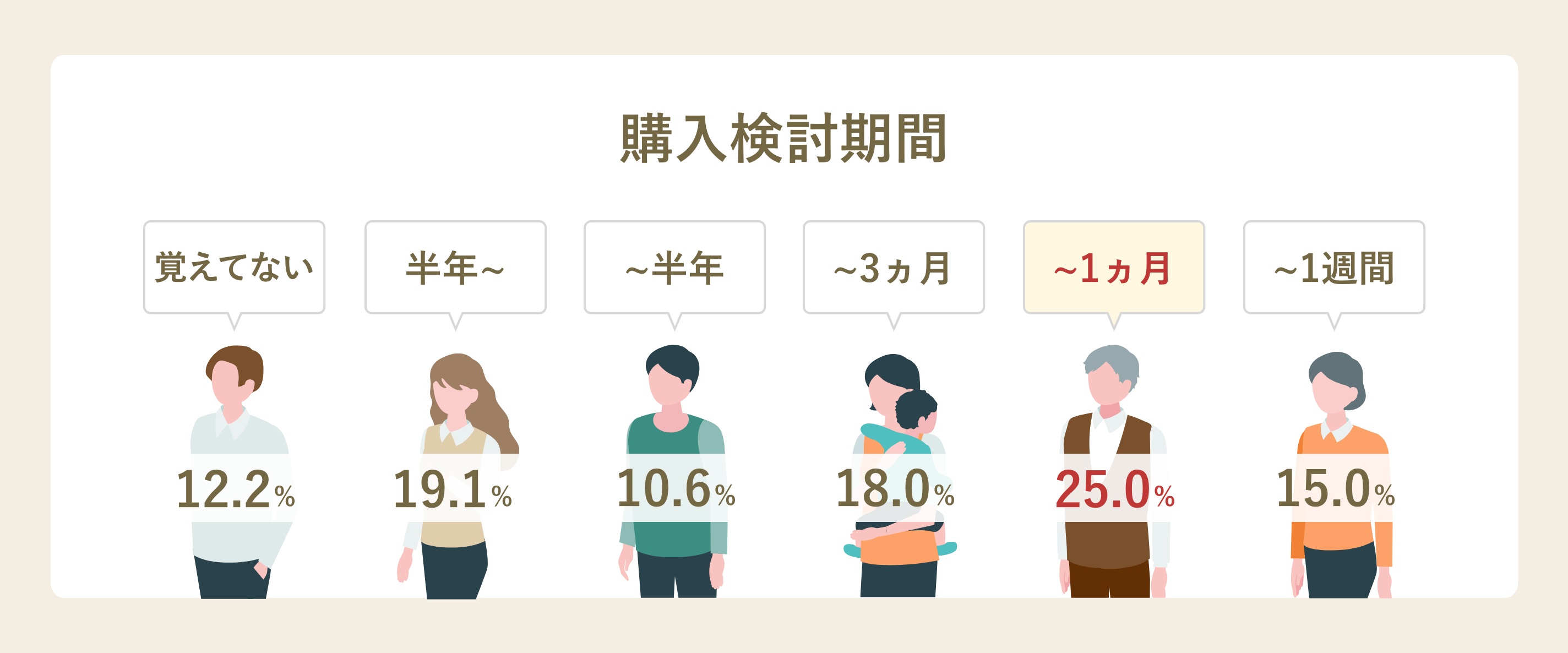 Housiiをご利用いただいている会員様は検討し始めてから間もない方が多く、検討を始めてから1か月程度の会員様の比率が最も高くなっております。
