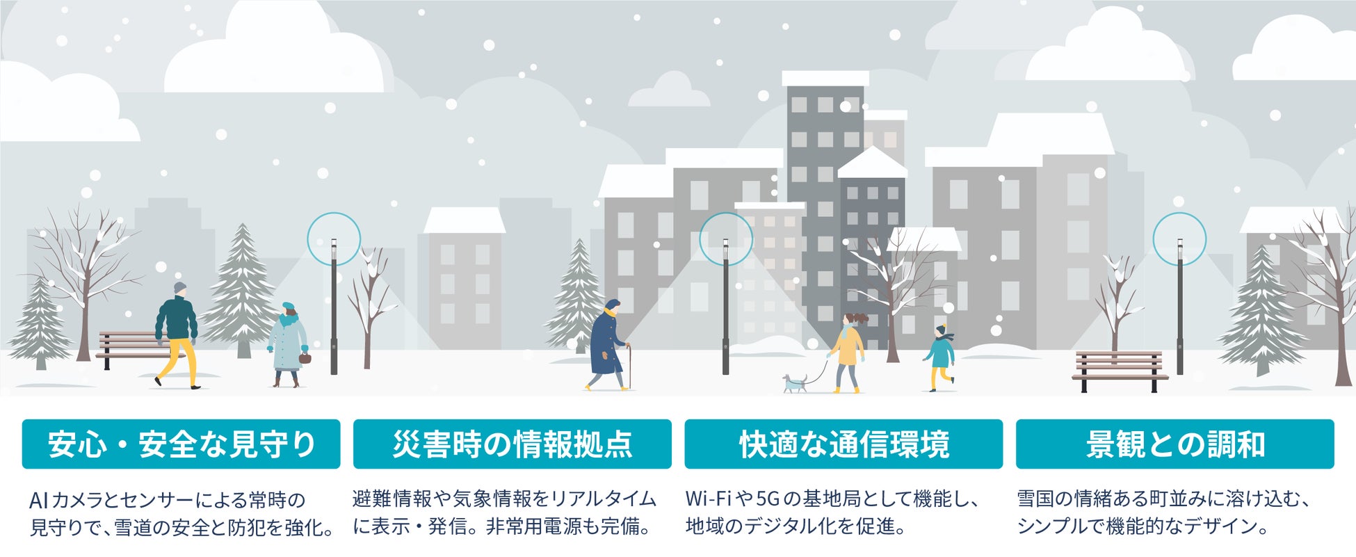 街灯の更新やインフラ再整備といった既存プロジェクトの中に、Smart Poleを自然に組み込むことで、地域にとって無理のない形で安全・安心を高度化していく――。今後も、地域インフラ整備に関わる事業者との協業を通じて、防犯・防災・見守りインフラのロールモデルを構築してまいります。