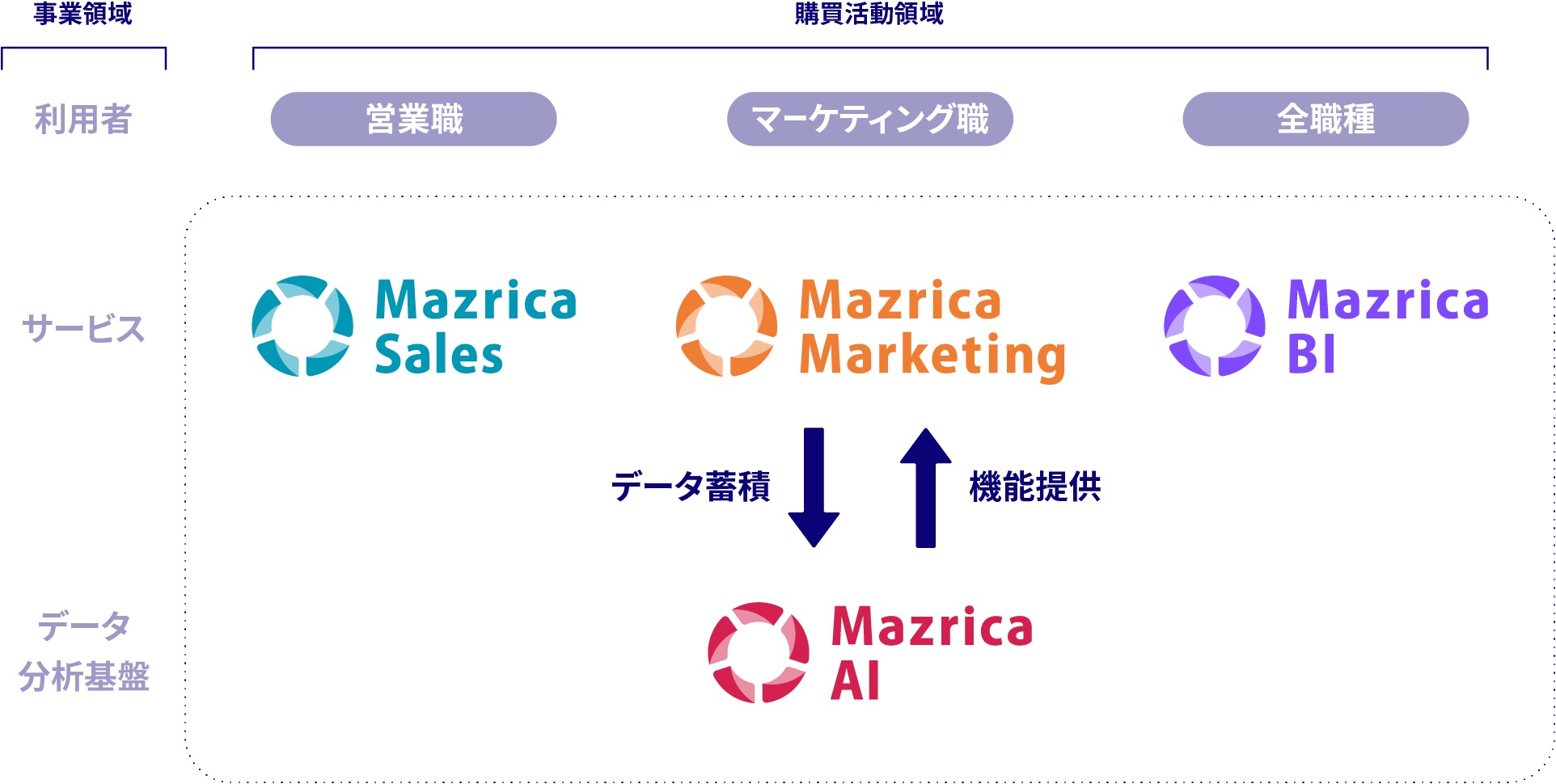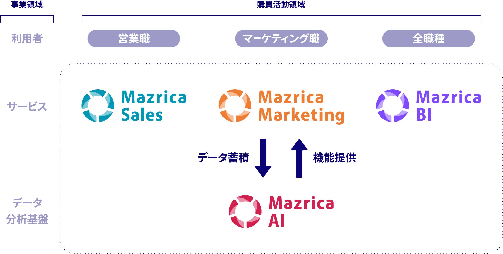 営業職向けプロダクトから、マーケティング職向けなど、全職種向けのプロダクトへと拡充して参ります。そして、従来より保持している外部から収集した企業データと、各利用企業の営業やマーケティング活動から蓄積されたデータをAI機能を使って分析することで、よりデータの価値を向上できるプラットフォーム創りを目指します。