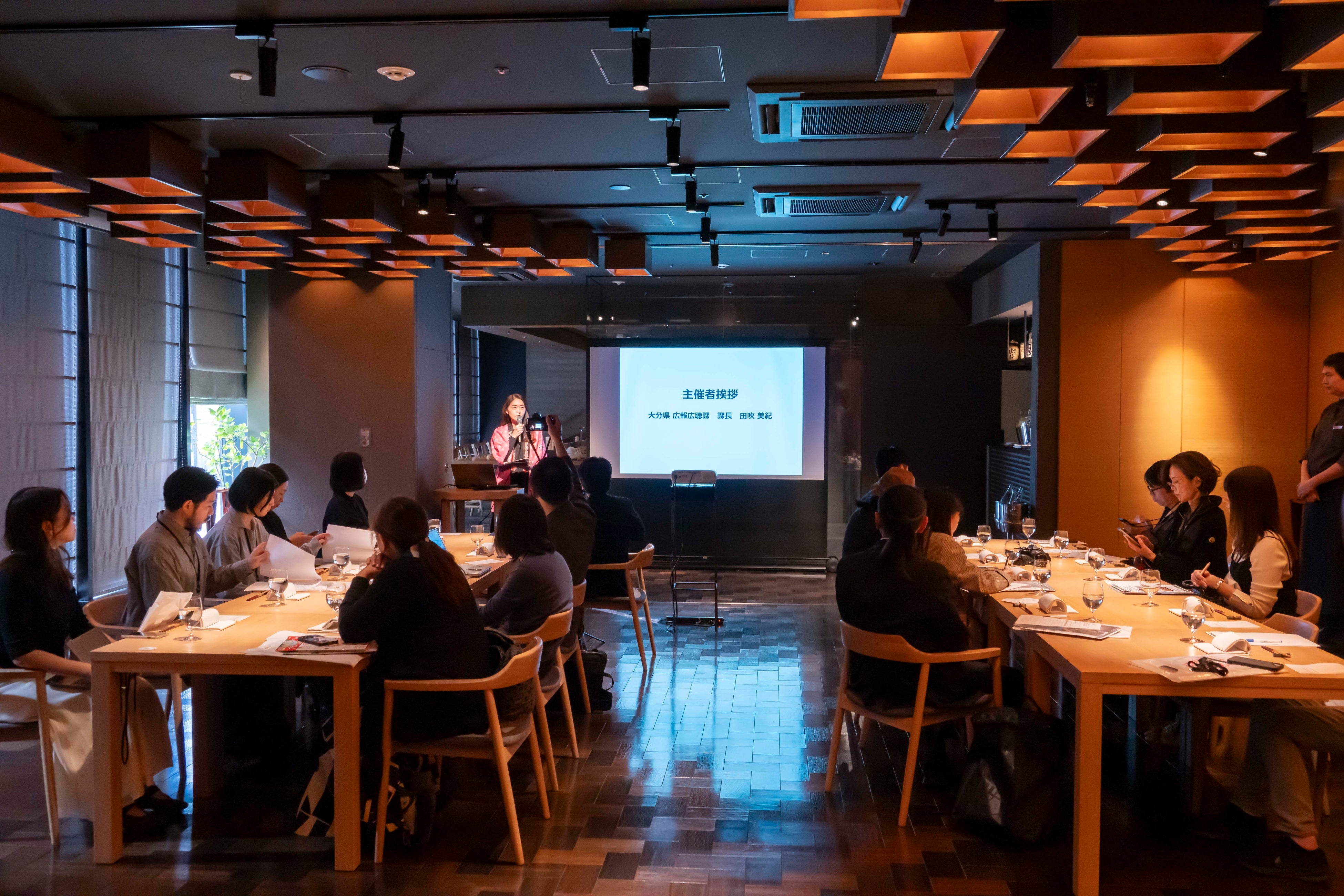 当日は、大分県の概要や観光、グルメについてのプレゼンテーションの後、昔から県民に親しまれている郷土料理を、坐来大分の料理長が現代風にアレンジした特別メニューが提供されました。
