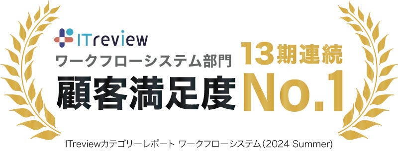 2024年6月までに掲載されたレビューを元に「ITreview カテゴリーレポート 2024 Summer」が発表され、コラボフローがワークフローシステム部門の13期連続「顧客満足度No.1」に選ばれました。