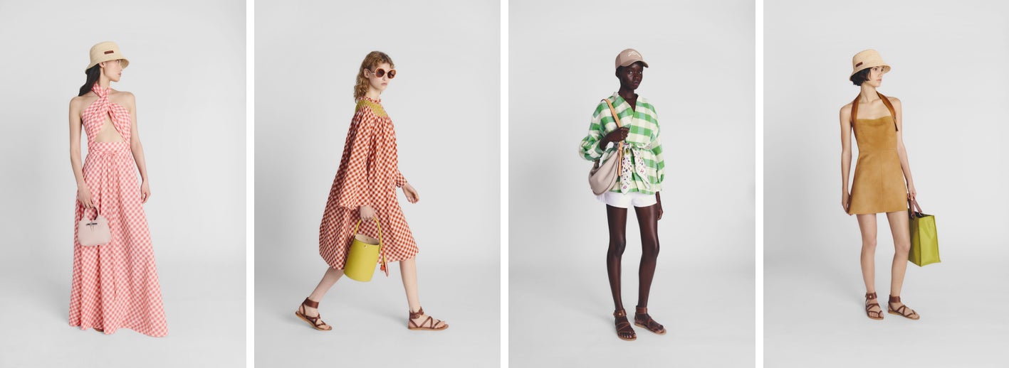 “現代のパリジェンヌ”は、パリから連れてきた再生素材のトートバッグ「カバ ロンシャン ドゥ マルシェ」(Look 32/37)を携えてマルシェを訪れます。ランチには、季節のハーブ(Look 4, 9/6/12, 16)が描かれたウェア、マダガスカルのNGO Anakaと協業したラフィアハット(Look 1, 8/11, 13, 16, 22, 24/26, 32/37)や防水のリバーシブルバケットハット(Look 30/36, 39/48, 40, 43, 45/52)で日差しやにわか雨をも楽しみながら食卓を囲みます。