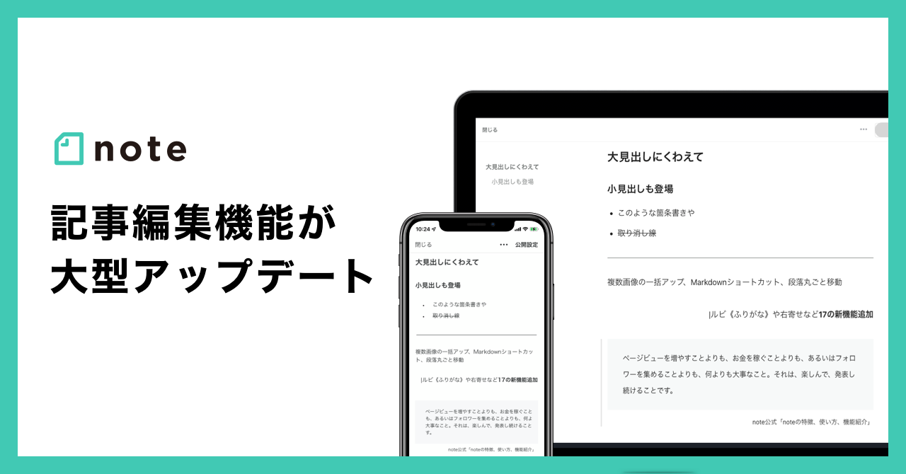 noteの記事編集機能が大型アップデート!9ヶ月のベータ期間と利用者フィードバックを基に、幅広い用途で使えるドキュメントツールへ進