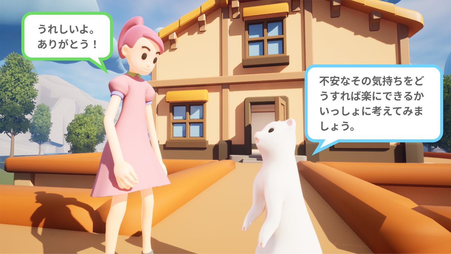 SELFのコミュニケーションAIは「MetaMe」の案内役であるペットの『オコジョ』の対話機能として活用されています。