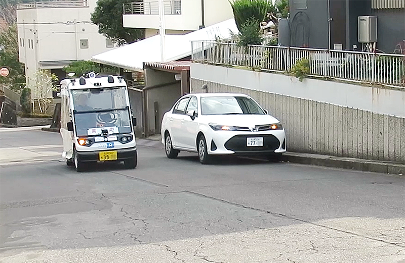 現在、同地域の生活道路において、例えば、路駐車両の迂回追い越し、高速の後続車からの避譲、更には一時停止標識での安全確認後の発車、所定の乗降場所からの乗客安全確認後の発車など多様な運転局面での活用を実証しています。