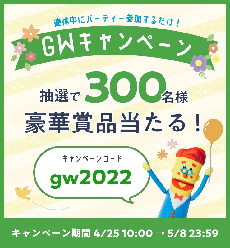 \ゴールデンウィークはオミカレで婚活パーティー!/真剣婚活会員62万人。婚活パーティーNO.1ポータルサイトのオミカレで4月25日(月)より『300名様に豪華賞品が当たる!GWキャンペーン♪』開催