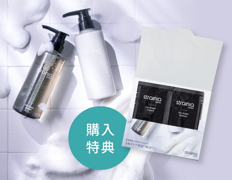 ご購入者様に先着順でケアストレートシャンプー・トリートメントのお試しサンプルプレゼント!
