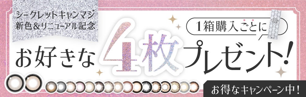 新色発売&1dayスペックのリニューアルを記念し、新しくなったシークレットキャンディーマジックをご自身の瞳で体感していただけるキャンペーンを実施いたします。新しくなったレンズの着け心地や、気になっていたカラーをこの機会に是非お試し下さい。