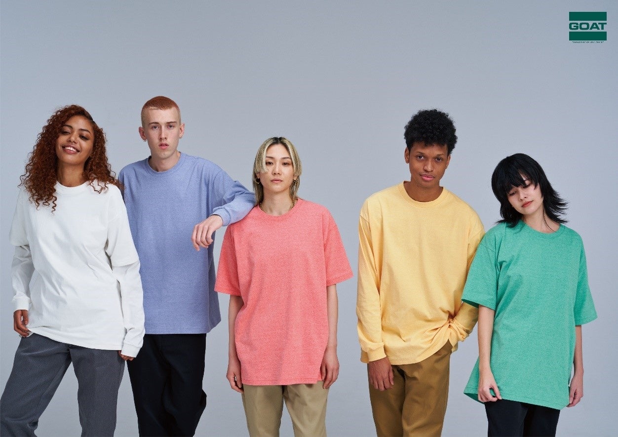 GOATのプロダクトは、Tシャツジェネレーションが愛した当時のボディのようにヘヴィデューティーでありながら、STAY FRESH加工を採用することで、ファッション性と機能性を兼ね備えた高い完成度を誇っています。また、幅広いサイズレンジと豊富なカラー展開は、着る人の性別、体型、年齢を選ぶことなく、全ての人の日常を彩ります。