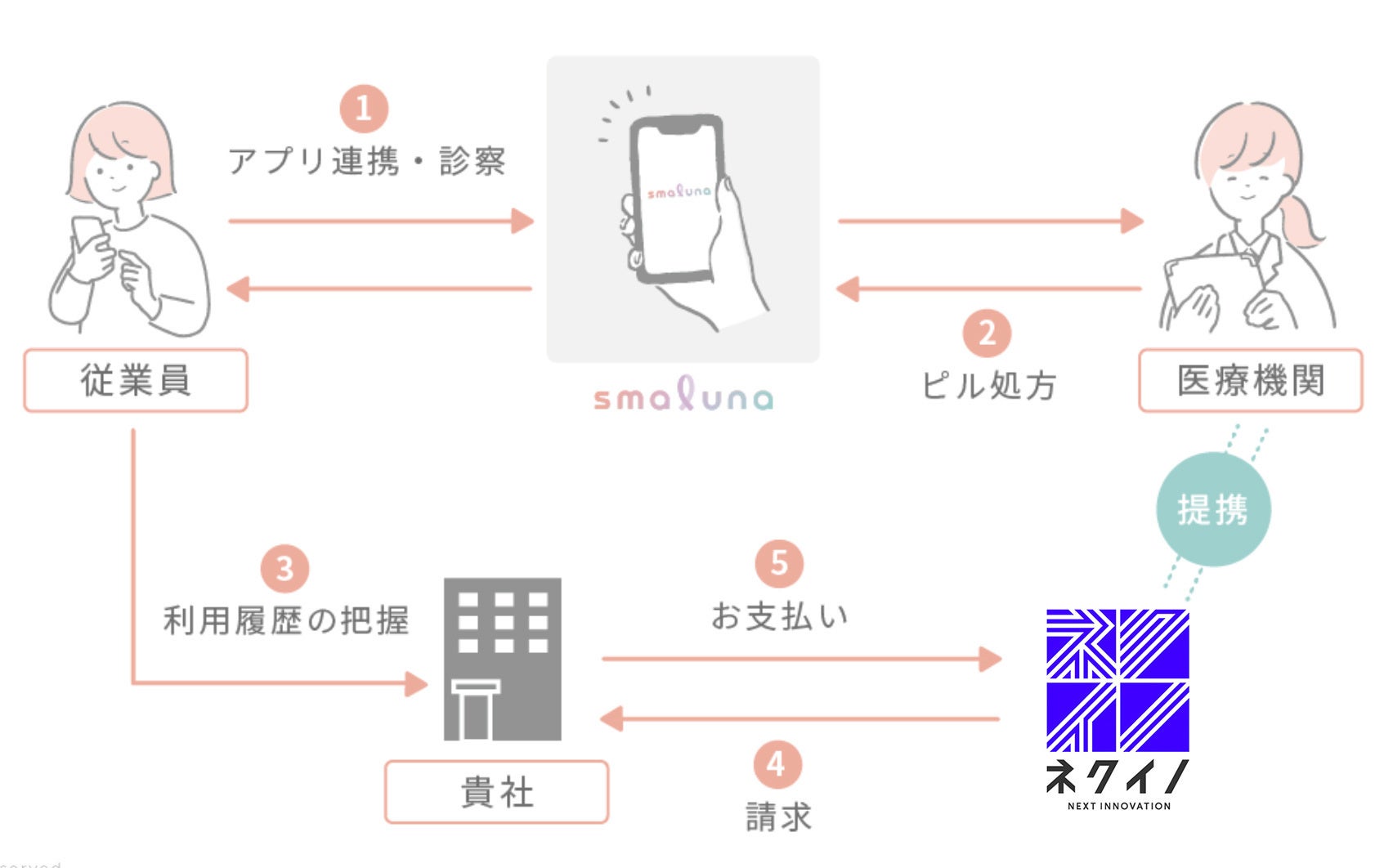 株式会社ネクイノ(大阪市北区、代表取締役 石井 健一 以下ネクイノ)が運営するオンライン・ピル処方サービス「スマルナ(※1)」は、2020年より提供を開始した法人向け健康支援プログラム「スマルナ for Biz」を6月1日よりリニューアルスタートします。“女性の健康” “QOL向上”を福利厚生の視点で捉え、健康経営及び、SDGs達成へ積極的に取り組む企業さまをサポートするべく、更なる多角的な健康支援を行うとともに企業の経営を円滑に推進してまいります。