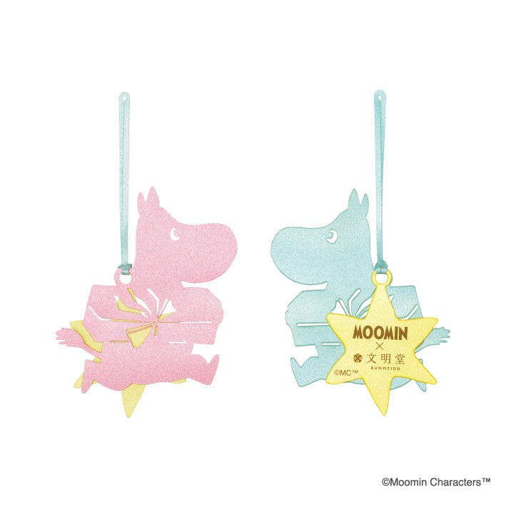 プレゼントを抱えたムーミントロールのシルエットで、やわらかいピンクとグリーン、表裏で異なる色に仕立てました。