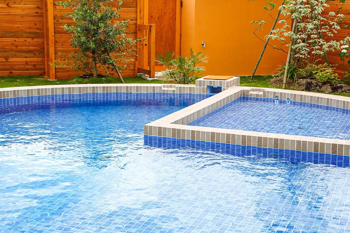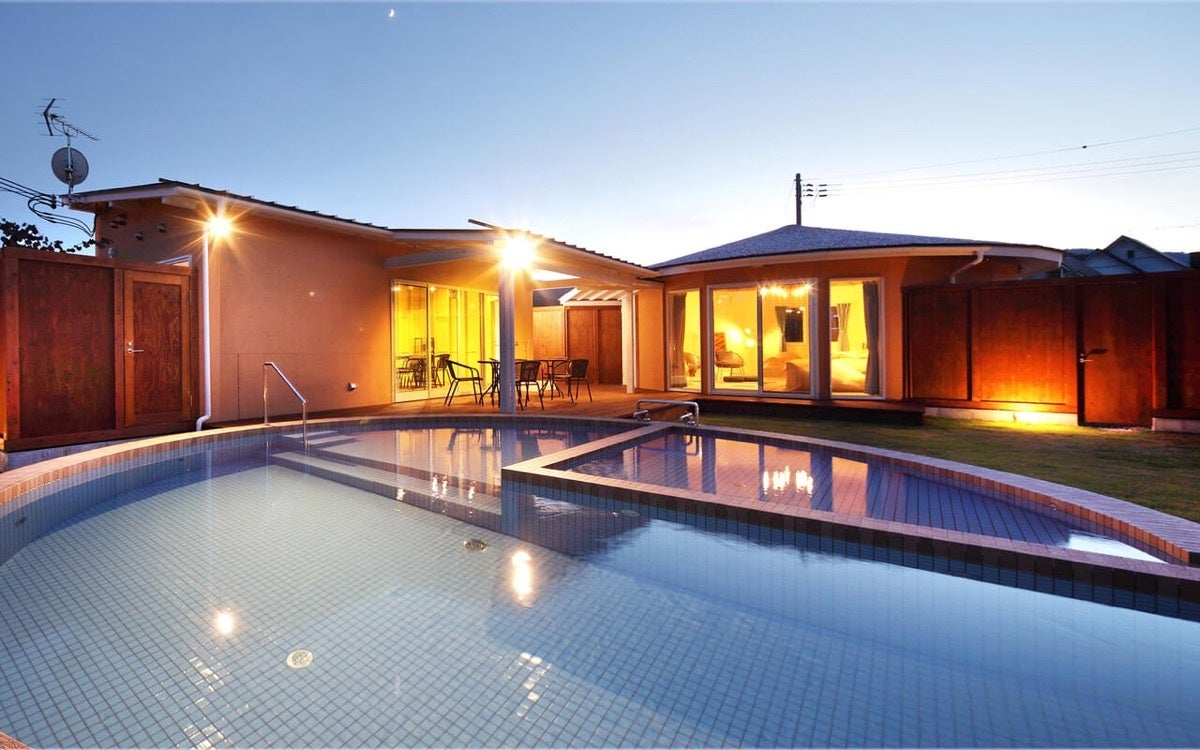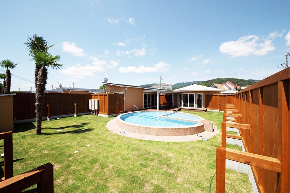 わんちゃん専用の遊泳エリアを備えたプライベートプール