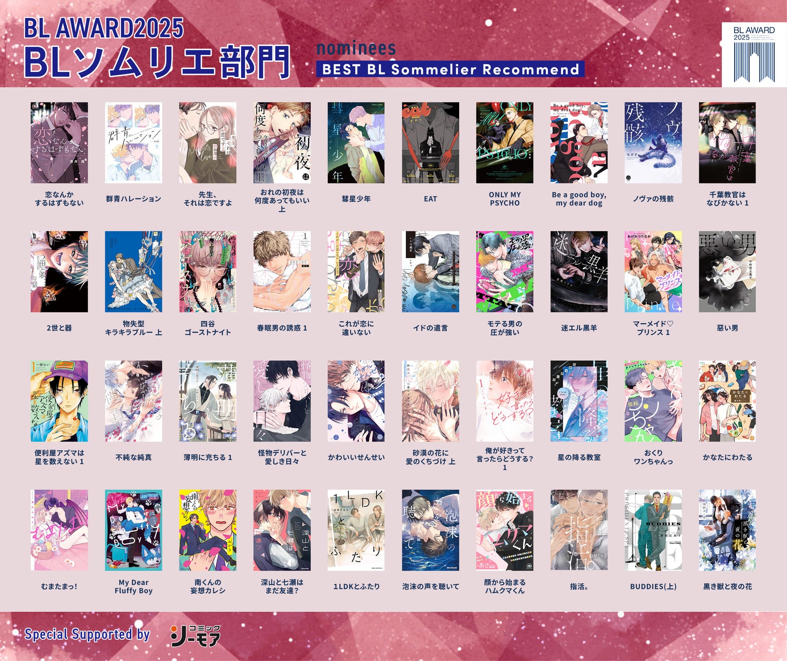 平均合格率1.4%の試験を突破したBL識者が選ぶ作品は?BLアワード2025「BLソムリエ部門」ノミネート作品発表!