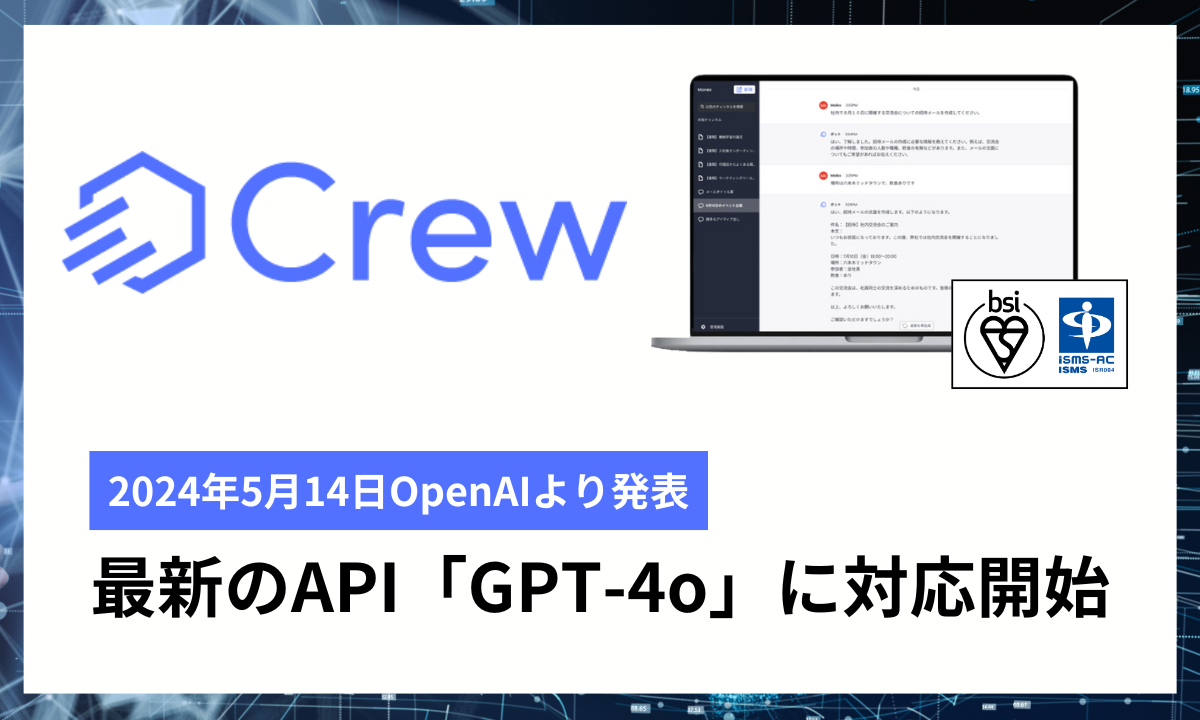 クラフター、ChatGPTで社内独自資料から回答する業務効率化ツール「Crew」にて「GPT-4o」対応への開発開始