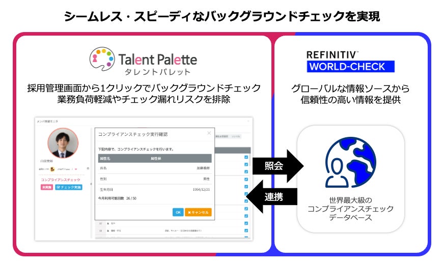 タレントパレット、リフィニティブとの連携により、 採用候補者のバックグラウンドチェックを瞬時に実施可能に