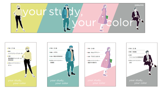 「楽しく・魅せつつまなぶ」をテーマに、商品をカラー別に陳列する企画です。トレンドのくすみカラーを取り入れ、ライフスタイルに合わせた「映えるまなび」を提案します。売り場では、カラーごとのペルソナ(想定するユーザー像)に合わせたPOPを展開し、ユーザーへの訴求を高めます。